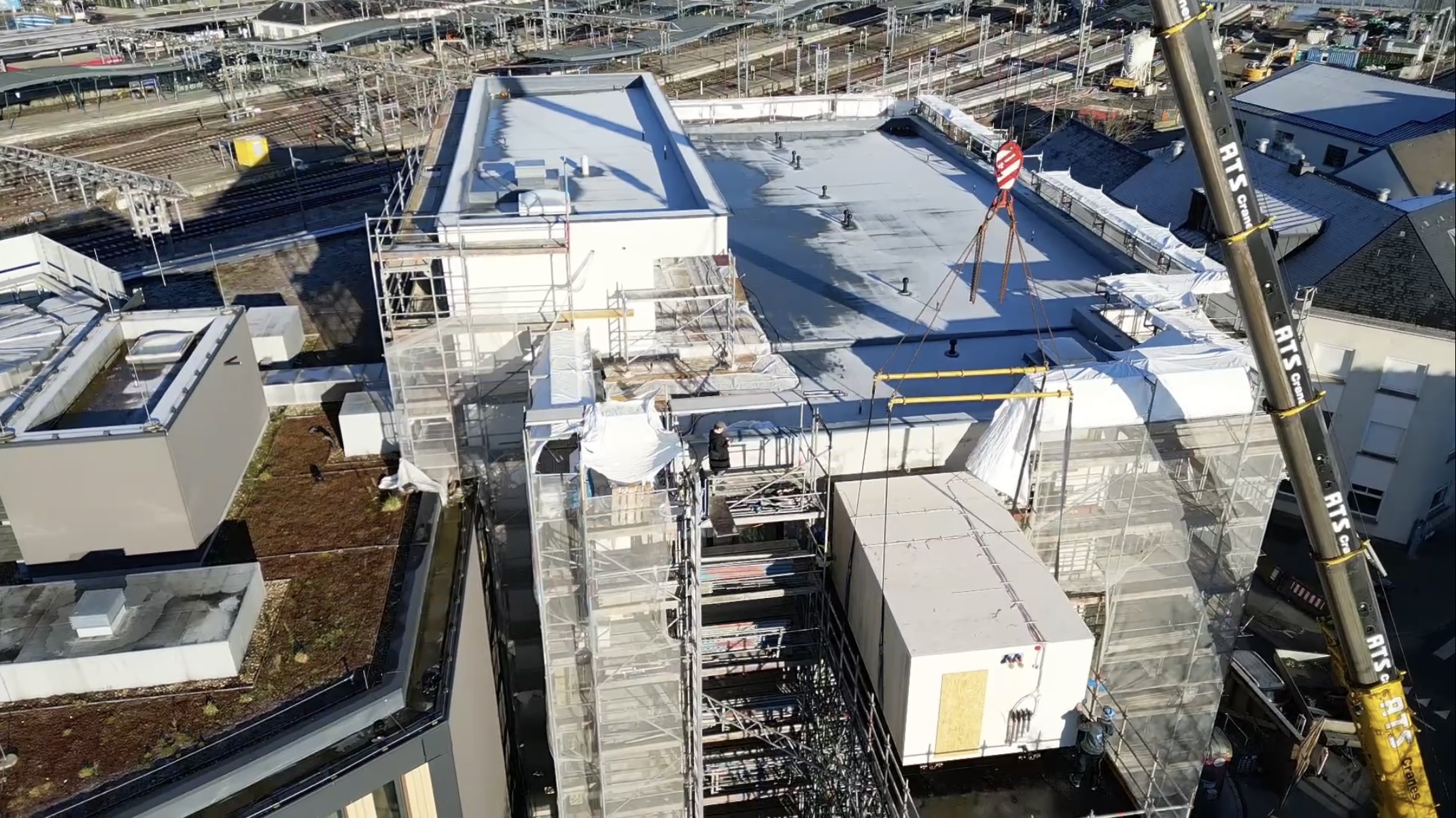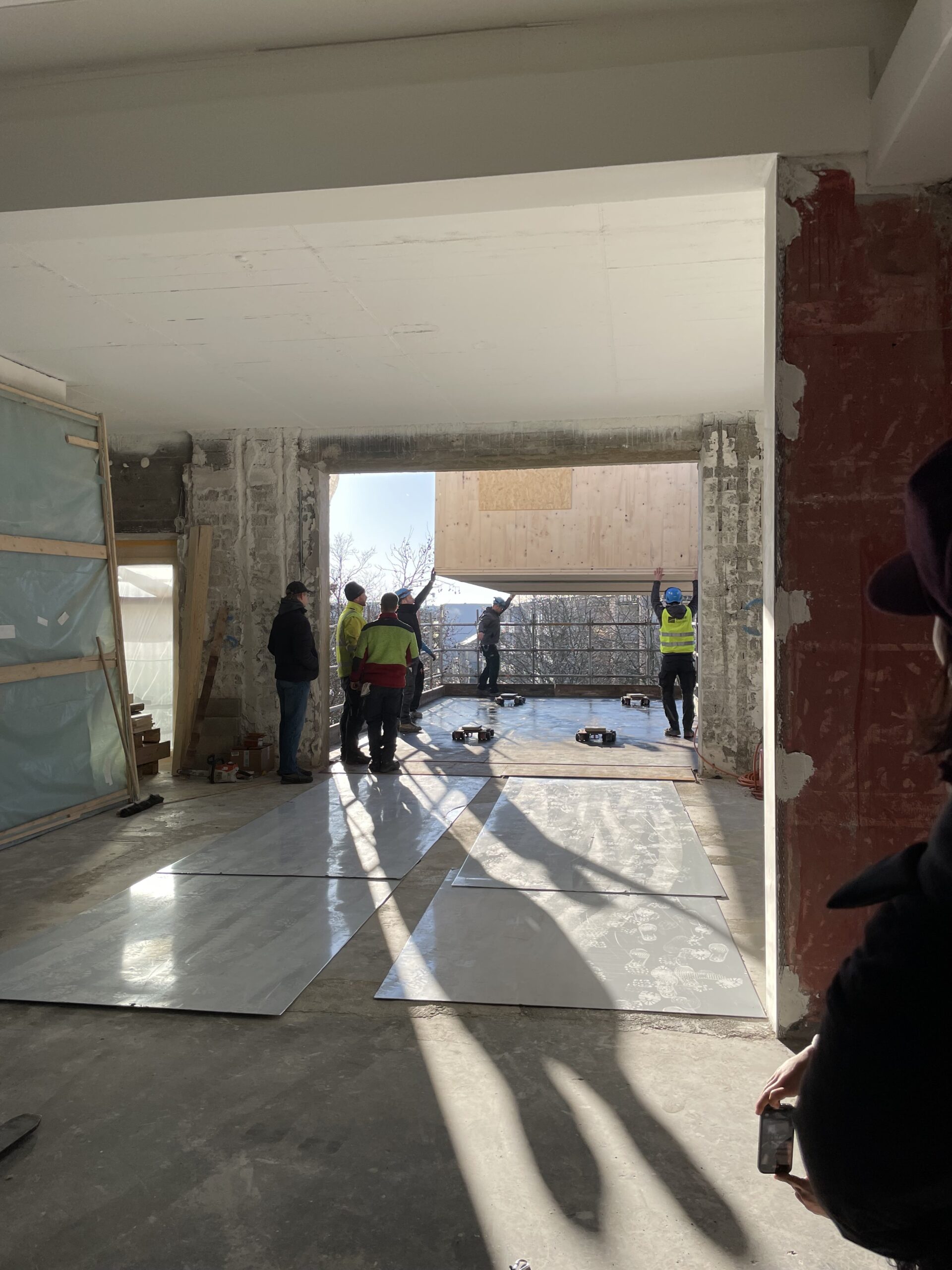 Die Module werden in einer Fabrikhalle vorgefertigt und über eine Öffnung in der Fassade präzise in das bestehende Gebäude eingebracht. Dieser Prozess gewährleistet eine hohe Effizienz und Flexibilität. Dank der Plug-and-Play-Technologie können die Module schnell und sauber an die neue Infrastruktur angeschlossen werden.